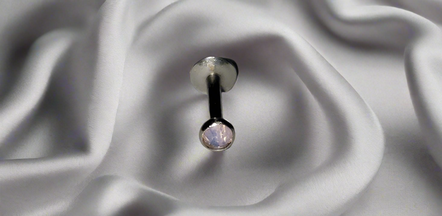Stainless Steel Labret/Monroe Piercing with Pink Opal Crystal